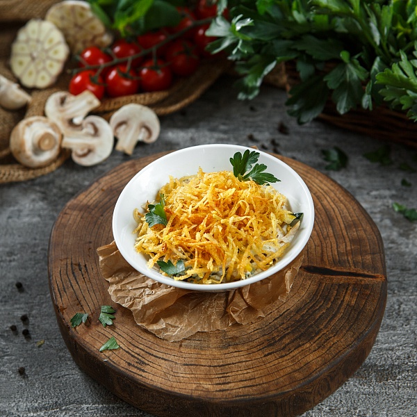 Мясо телятины, картофель, помидоры, яйцо, майонез